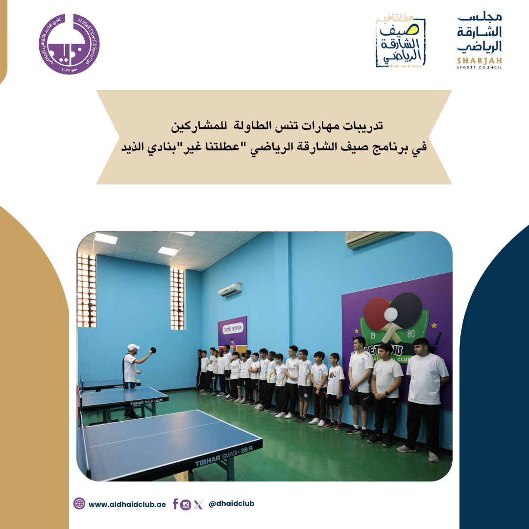 تنمية مهارات تنس الطاولة للصغار في نادي الذيد ضمن “صيف الشارقة الرياضي”