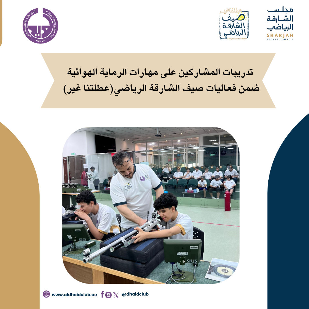 تفاصيلشهدت صالة الرماية بنادي الذيد تدريباًعملياً لفئة الكبارمن ( 13حتى 17سنة) على مهارات الرماية الهوائية وذلك ضمن فعاليات صيف الشارقة الرياضي “عطلتنا غير”، والتي تُقام برعاية مجلس الشارقة الرياضي بهدف…