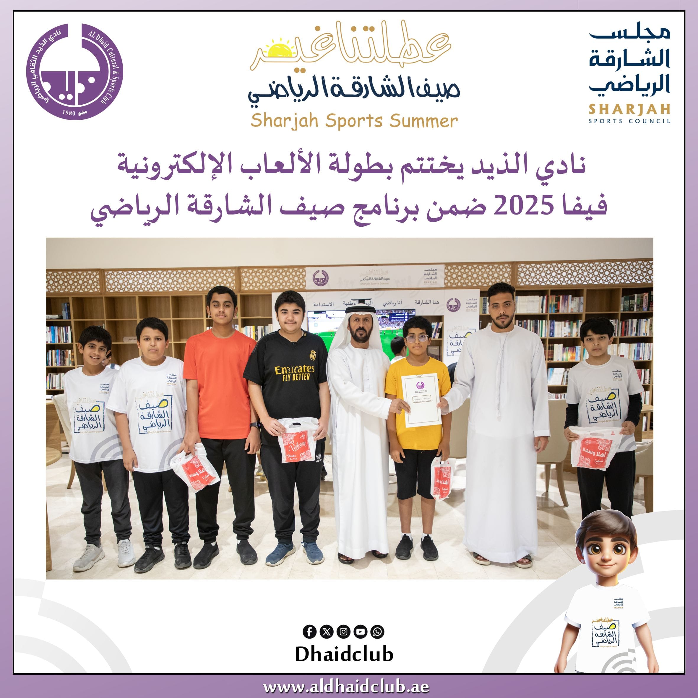 تفاصيلفي إطار فعاليات الأسبوع الثالث من صيف الشارقة الرياضي (عطلتنا غير) أسبوع الهوية الوطنية اختتم نادي الذيد مسابقة الألعاب الإلكترونية فيفا 25