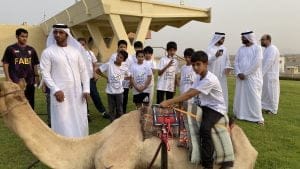وهدفت الزيارة التي تقام ضمن فعاليات صيف الشارقة الرياضي عطلتنا غير أسبوع الهوية الوطنية إلى التعرف على التسهيلات التي يقدمها النادي لملاك الهجن من السباقات التي تقام لصغار الهجن خلال الفترة الصيفية وكيفية تنظيم السباقات من قبل اللجنة المنظمة للسباق وتم تعريف المشاركين على جهاز الراكب الآلي الذي تم اختراعه من قبل مواطن إماراتي وتعريفهم بالتسميات الخاصة بالأدوات التي تستخدم للركوب والسباقات وتم طرح أسئلة على المشاركين خلال التدريب الحي للركوب على الجمال وتم إهداء الدروع التذكارية للمشاركين وفي الختام تقدم المشاركون بالشكر لرئيس وأعضاء مجلس الإدارة على الاستقبال و المعلومات القيمة .