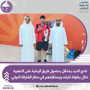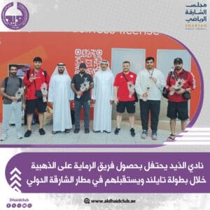نادي الذيد يحتفل بحصول فريق الرماية على الذهبية خلال بطولة تايلند ويستقبلهم في مطار الشارقة الدولي